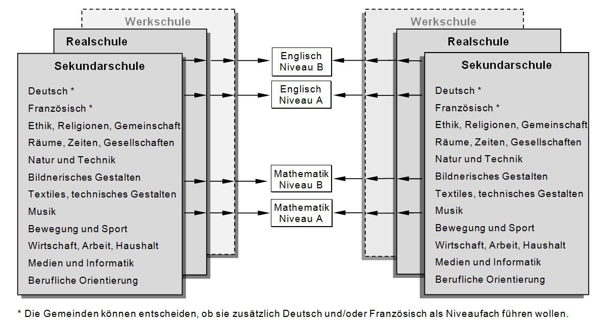 Für die Zuweisung in die Werk-, Real- und Sekundarschule existieren keine verbindlichen Orientierungswerte. Die Leistungsanforderungen werden folgendermassen beschrieben: