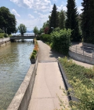 Die Radfahrenden und zu Fuss Gehenden werden über eine provisorische Umleitung geführt.
