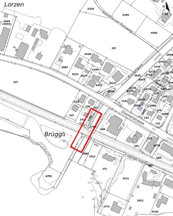 Die bestehende Fuss- und Radwegunterführung Brüggli unterquert die SBB-Doppelspurlinie Zug/Rotkreuz. Die Unterführung ist Bestandteil der Radstrecke Nr. 29 sowie des Lorzenleitwerks und wurde im Jahr 1973, im Zusammenhang mit der Lorzenumlegung erstellt. Der Lorzenuferweg ist eine sehr beliebte Strecke für zu Fuss Gehende und Radfahrende. Die Radstrecke 29 verläuft von Baar her der Lorze entlang in Richtung Zugersee und schliesst im Gebiet Brüggli an die Radstrecke 1, welche am Zugersee entlang von Cham nach Zug führt. Die beiden Aufgänge der Unterführung bestehen aus Treppen mit Schieberampen mit einer Steigung von rund 36 %‚ welche mit Rollstühlen, Velos, Veloanhängern oder mit Kinderwagen kaum zu bewältigen sind.