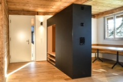 Raum im Sennhaus mit Stuhl und vielen Objekten